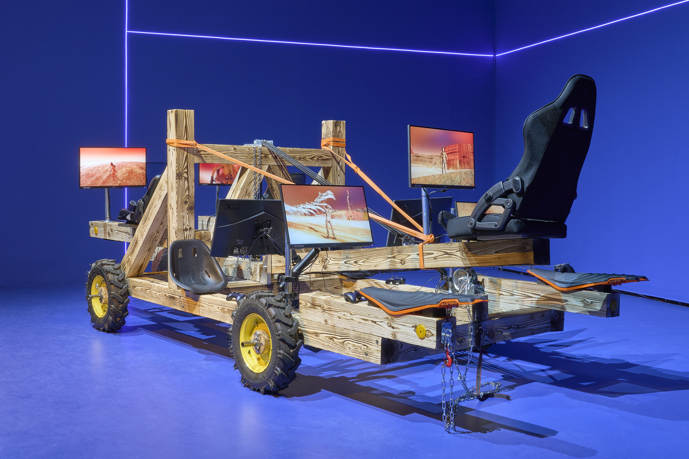 Using surreal humour and an absurdist aesthetic sensibility inspired by high fantasy, classic science fiction, MMORPGs and niche online communities, Theo Triantafyllidis builds immersive worlds that pry at the wider capabilities and broader ethics of the technology used in their creation.